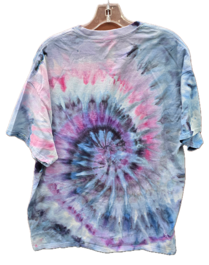 Handmade Quirky Homebrew Supply Tie Dyed T-Shirts made by Tom Goodwin and Fuzzy Rainbow Dyes! Each shirt is a unique creation. This shirt was created with the ice dye method for a more flowy effect.