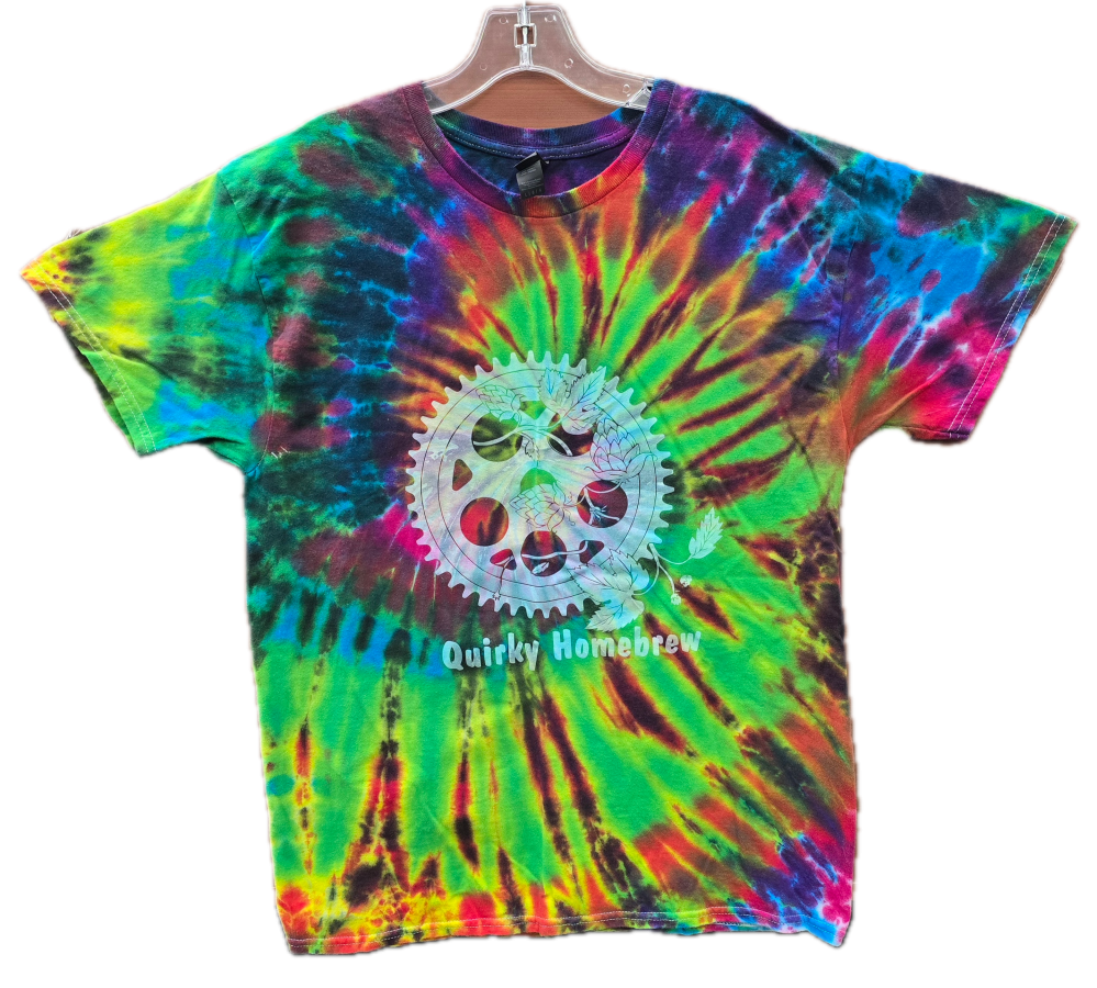 Handmade Quirky Homebrew Supply Tie Dyed T-Shirts made by Tom Goodwin and Fuzzy Rainbow Dyes! Each shirt is a unique creation
