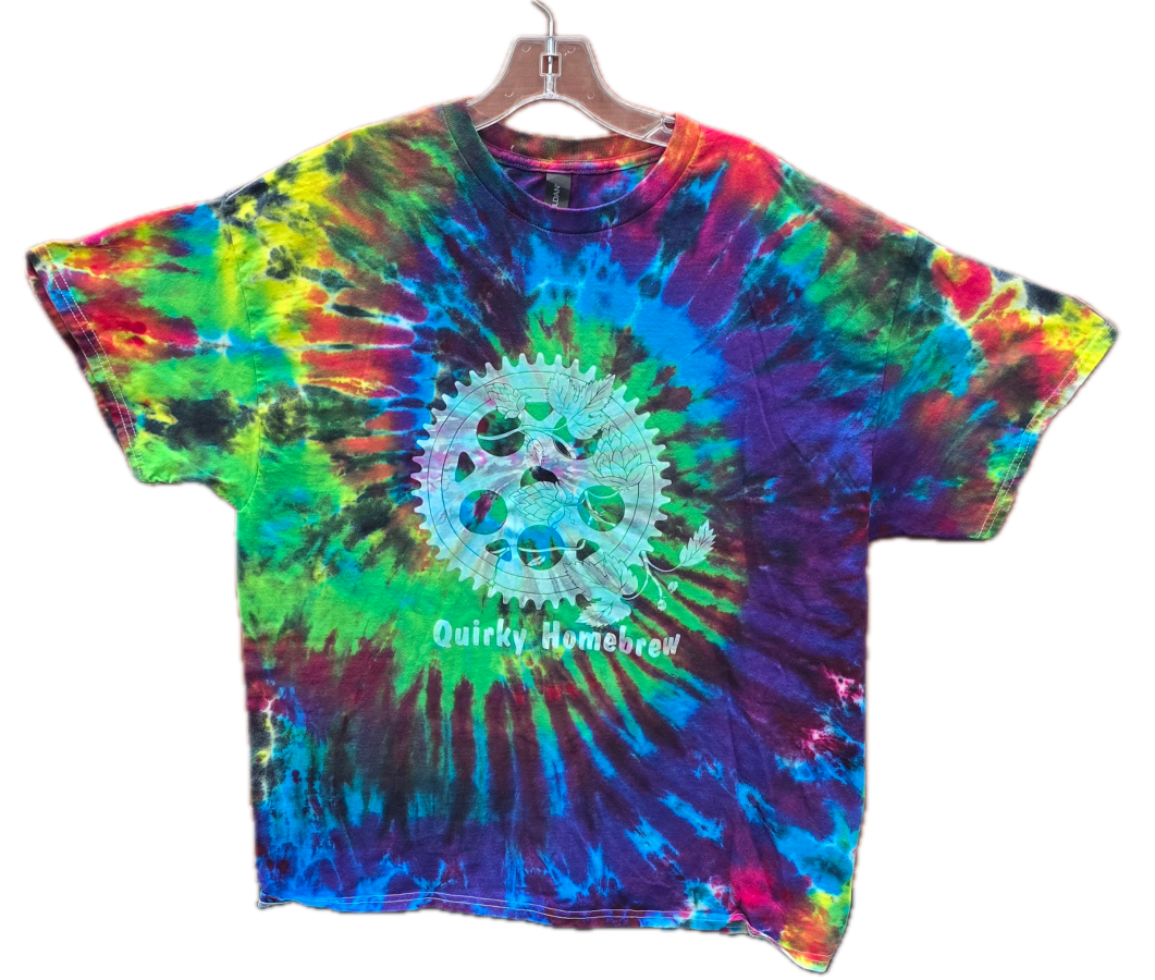 Handmade Quirky Homebrew Supply Tie Dyed T-Shirts made by Tom Goodwin and Fuzzy Rainbow Dyes! Each shirt is a unique creation