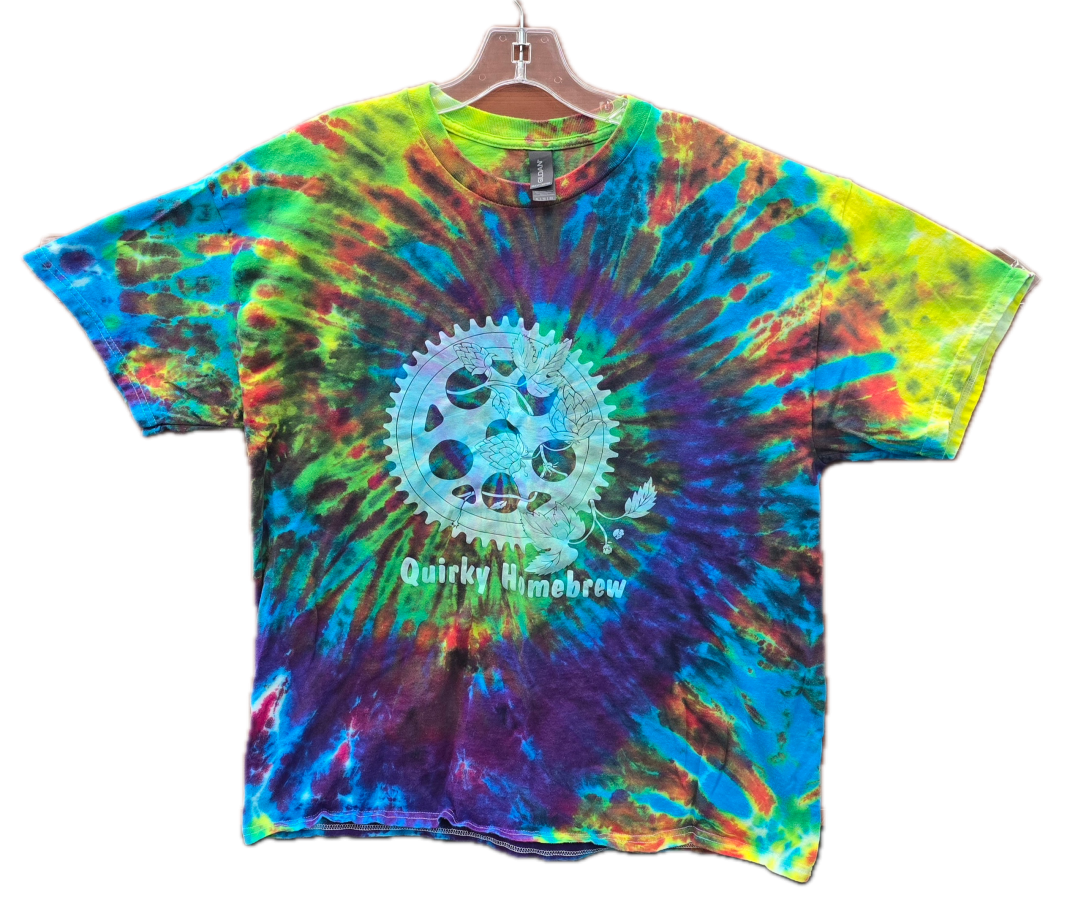 Handmade Quirky Homebrew Supply Tie Dyed T-Shirts made by Tom Goodwin and Fuzzy Rainbow Dyes! Each shirt is a unique creation